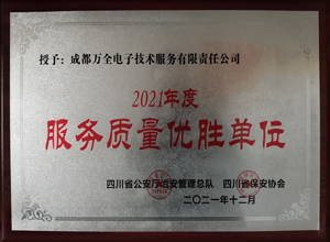 熱烈慶祝成都萬全電子榮獲2021年度“服務質(zhì)量優(yōu)勝單位”稱號