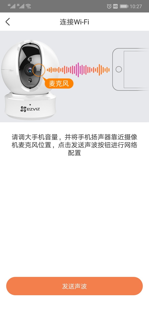 點(diǎn)擊“發(fā)送聲波”靠近攝像頭,設(shè)備會(huì)自動(dòng)連接。如果有多個(gè)攝像頭,在攝像頭通電的狀態(tài)下,重復(fù)第三步。