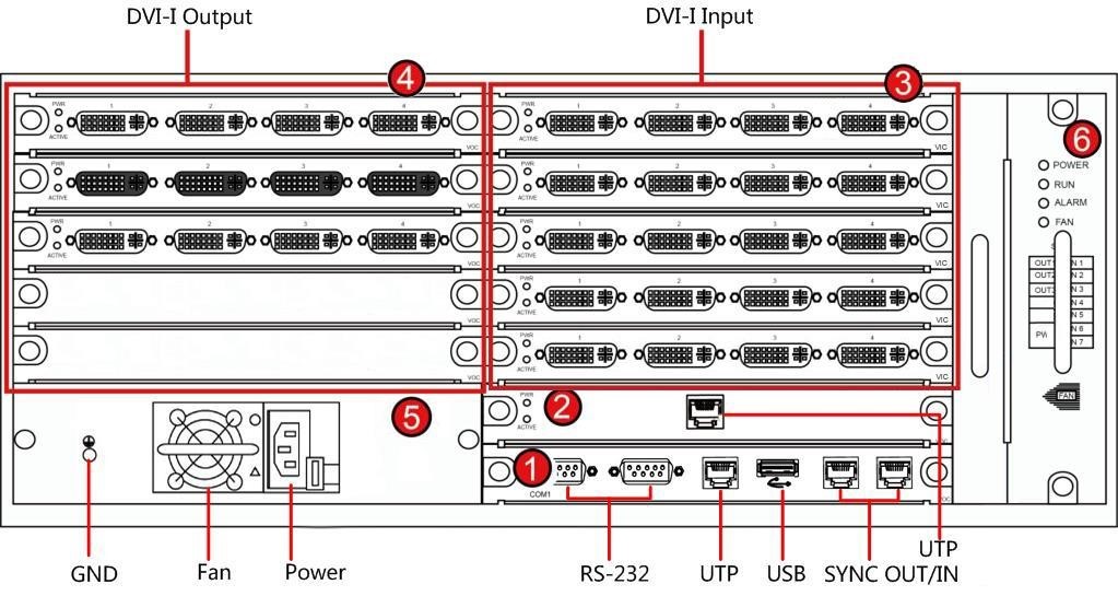 2/3.輸入業(yè)務(wù)板插槽6 個(gè)輸入板槽位,支持 VGA、DVI、HDMI、BNC、YPbPr、HDBaseT、DP 及 IP 源多種信號(hào)解碼